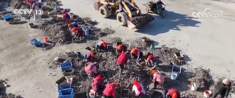 某水產(chǎn)公司負責人劉浩介紹,分揀之后就凈化,凈化之后用清洗機清洗,把泥沙清洗掉然后裝袋打包,幾乎每天加工五六萬斤。