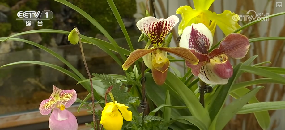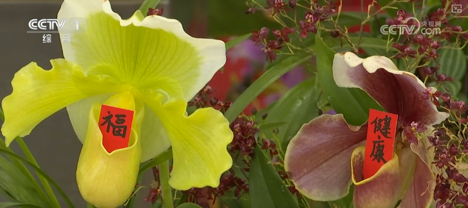 在北京花卉交易中心,各色年宵花爭奇斗艷。其中,新品蘭花“兜蘭”十分惹眼,獨特的兜形花瓣里,被放入“順?biāo)臁薄敖】怠钡淖8?ㄆ?,寓意“兜住順?biāo)臁薄岸底〗】怠保8M滿,年味十足。