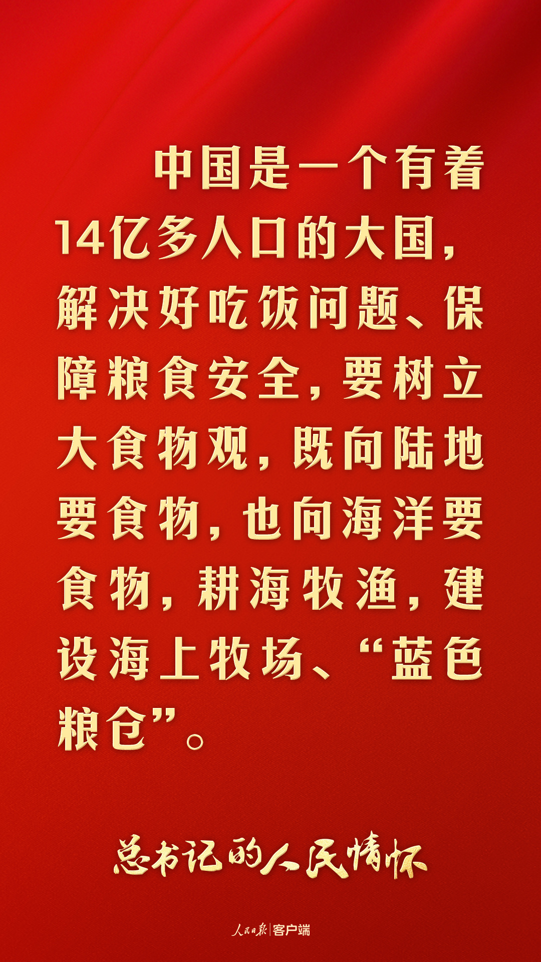 向江河湖海要食物。到廣東東海島上看海水養(yǎng)殖,習(xí)近平總書記強調(diào):“提高我們國民的身體素質(zhì),把水產(chǎn)搞上去,把蛋白質(zhì)搞上去很重要。”