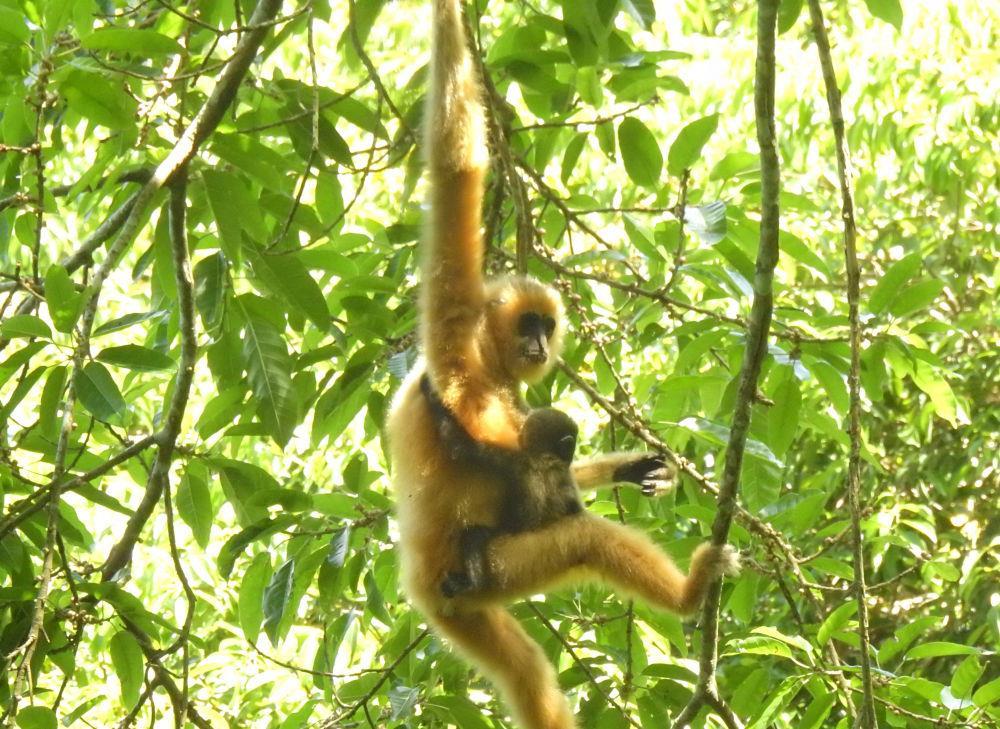 海南長(zhǎng)臂猿是海南特有的靈長(zhǎng)類動(dòng)物,也是海南熱帶雨林生態(tài)系統(tǒng)完整性和原真性的指示物種,目前只分布在海南熱帶雨林國(guó)家公園霸王嶺片區(qū)。漫步林間,“猿啼”“鳥(niǎo)鳴”入耳,巨大板根、獨(dú)木成林、“空中花園”、植物“絞殺”現(xiàn)象,滿目都是奇特景觀。