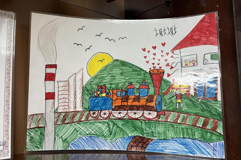 在斯梅戴雷沃鋼廠辦公樓入口處,擺放著一摞廠辦期刊。每一期封底都是一幅鋼廠子弟或當(dāng)?shù)匦W(xué)生的畫作。在孩子們眼中,鋼廠色彩斑斕:郁郁蔥蔥的山腳下,色彩鮮亮的火車頭在廠區(qū)內(nèi)穿梭,噴出“小愛(ài)心”;孩子們手持氣球,站在鋼廠援建的學(xué)校前,腳下開(kāi)滿鮮花;塞中兩國(guó)員工肩并肩站在一起,兩國(guó)國(guó)旗和兩種文字的“謝謝”排列在一起。