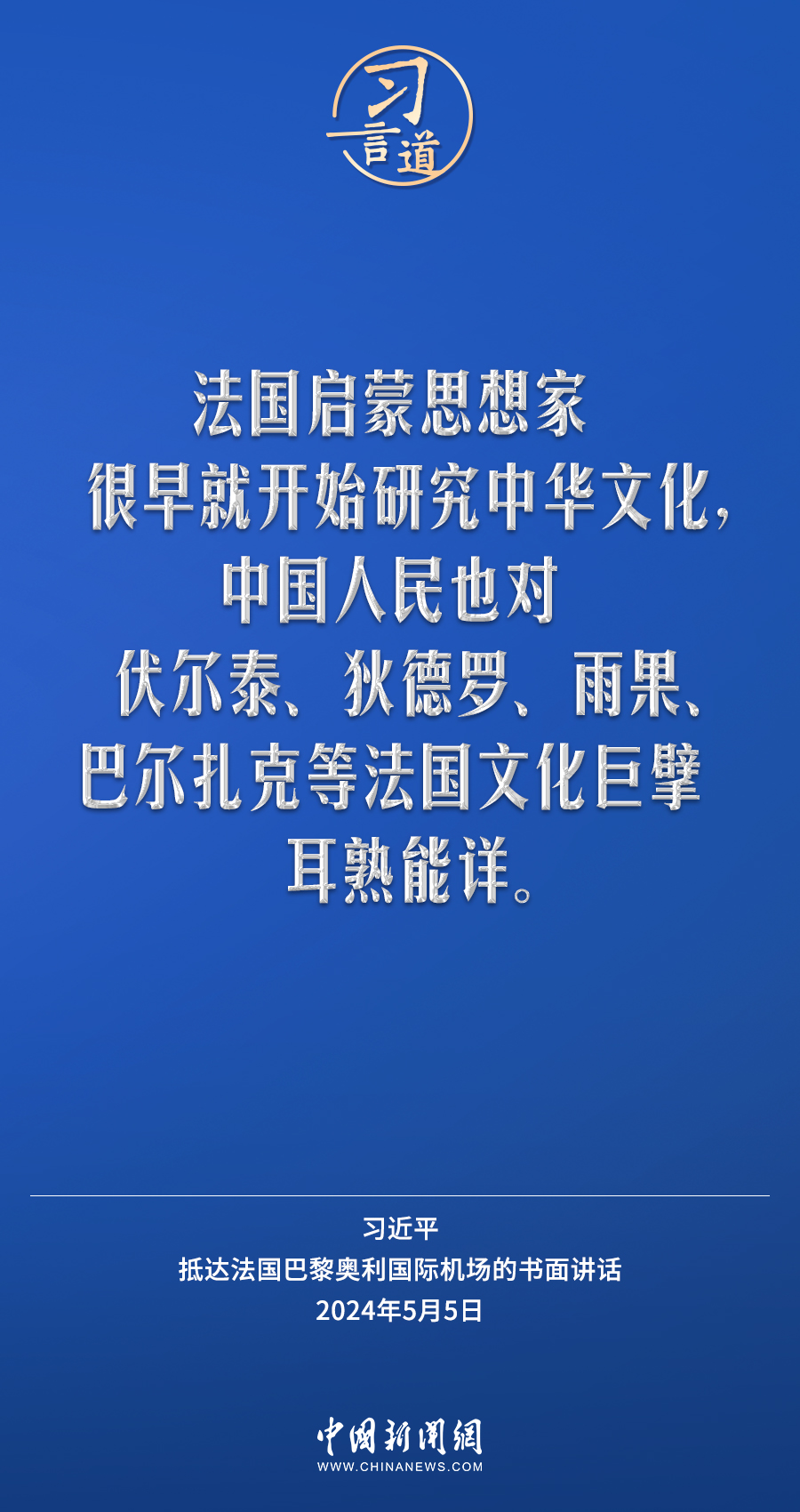 當(dāng)?shù)貢r(shí)間5月5日下午,國(guó)家主席習(xí)近平抵達(dá)巴黎,開(kāi)始對(duì)法國(guó)進(jìn)行國(guó)事訪問(wèn)。在抵達(dá)法國(guó)巴黎奧利國(guó)際機(jī)場(chǎng)的書(shū)面講話中,習(xí)近平指出——