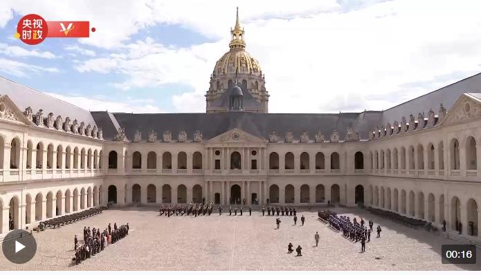 當?shù)貢r間5月6日下午,在馬克龍陪同下,習近平檢閱法蘭西共和國衛(wèi)隊和陸海空三軍儀仗隊。