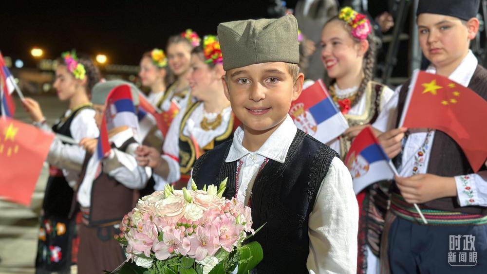 機場迎接習主席的塞爾維亞少年。(總臺央視記者范一鳴拍攝)