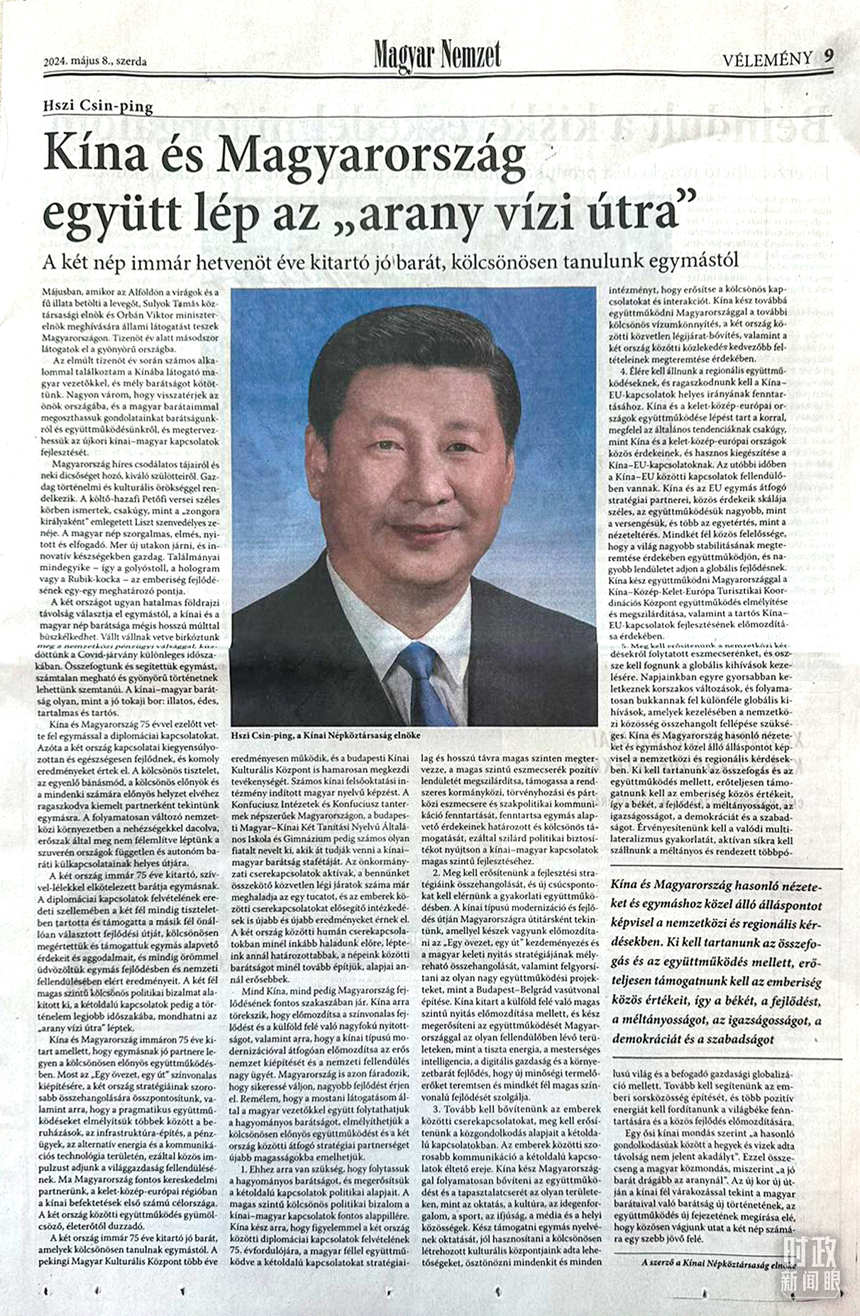 在此訪之際發(fā)表的署名文章中,習(xí)近平主席表示,中方愿以兩國建交75周年為契機,同匈方從戰(zhàn)略高度和長遠角度對雙邊關(guān)系作出頂層設(shè)計。