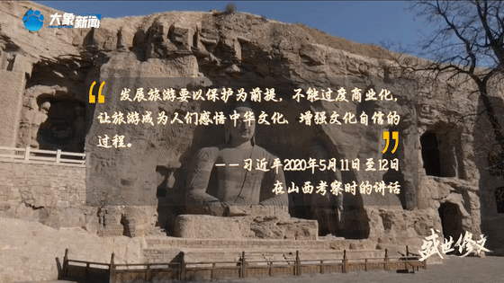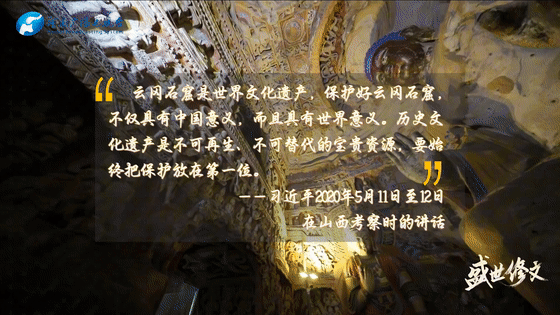云岡石窟是世界文化遺產(chǎn),保護好云岡石窟,不僅具有中國意義,而且具有世界意義。歷史文化遺產(chǎn)是不可再生、不可替代的寶貴資源,要始終把保護放在第一位。