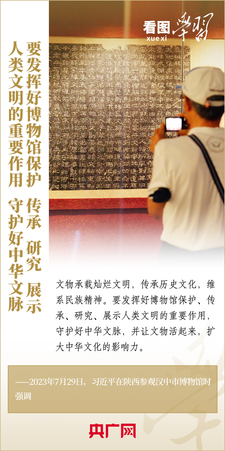 “一座博物館就是一所大學(xué)?!薄安┪镳^很重要,我從小就愛(ài)看博物館,小時(shí)候北京的博物館我差不多都看過(guò)了”“博物館建設(shè)要更完善、更成體系,同時(shí)發(fā)揮好博物館的教育功能”……在國(guó)內(nèi)考察中,習(xí)近平總書記曾經(jīng)多次走進(jìn)當(dāng)?shù)夭┪镳^,了解館藏文物的收藏、保護(hù)、研究情況,對(duì)博物館建設(shè)和利用作出重要指示。一起來(lái)學(xué)習(xí)!
