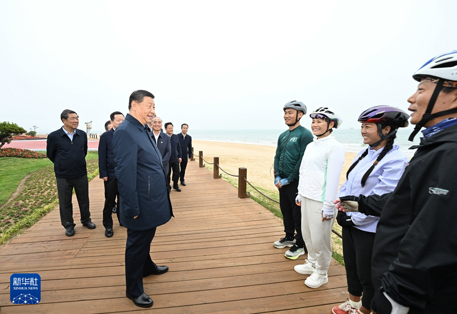 5月22日至24日,中共中央總書記、國家主席、中央軍委主席習近平在山東考察。這是22日下午,習近平在日照市陽光海岸綠道同市民親切交流。新華社記者 謝環(huán)馳 攝