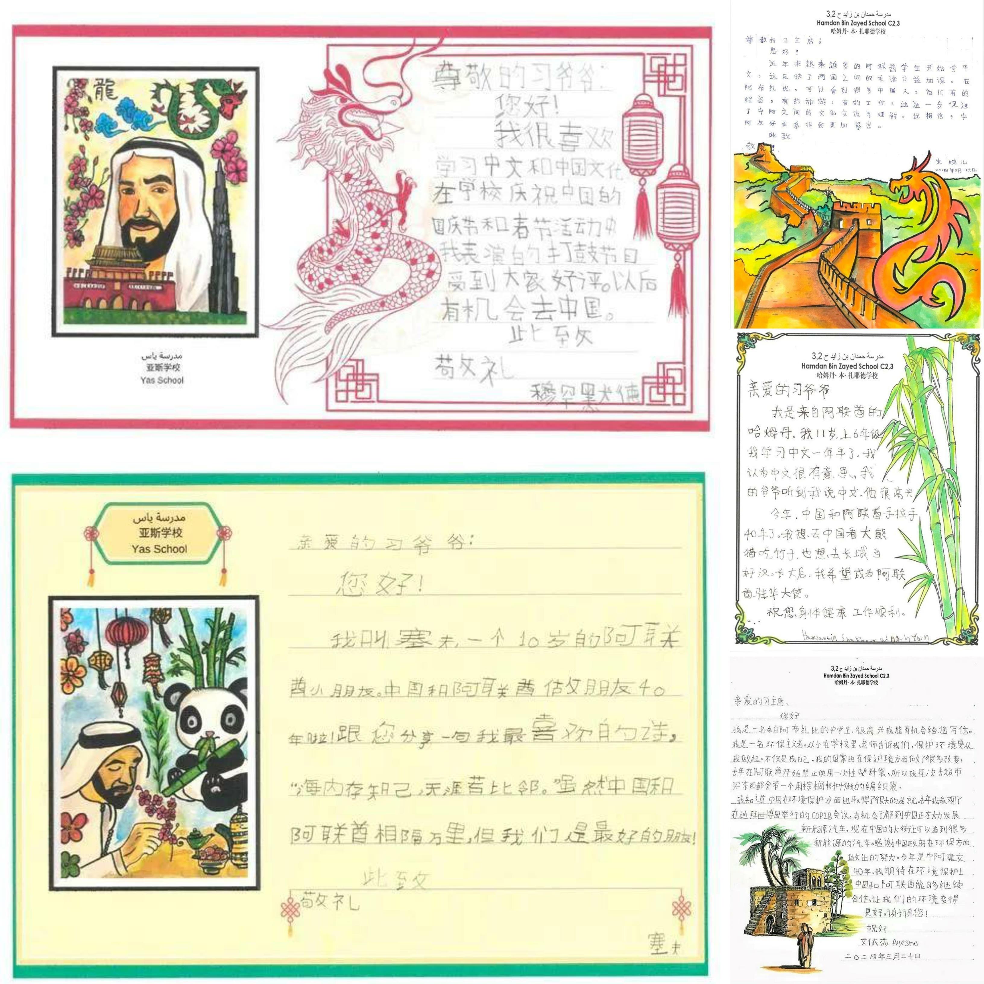 “我讀了你們每個(gè)人的信,從字里行間、畫(huà)里畫(huà)外感受到了大家對(duì)中國(guó)文化的熱愛(ài),對(duì)兩國(guó)友好的期盼?!苯?,習(xí)近平主席在給他們的復(fù)信中說(shuō),“5年前,我同穆罕默德總統(tǒng)共同啟動(dòng)阿聯(lián)酋中文教學(xué)‘百校項(xiàng)目’,如今看到‘學(xué)中文’在阿聯(lián)酋已經(jīng)成為一種新風(fēng)尚,培養(yǎng)了一批像你們這樣的中阿交流小使者,我很欣慰?!?/p>