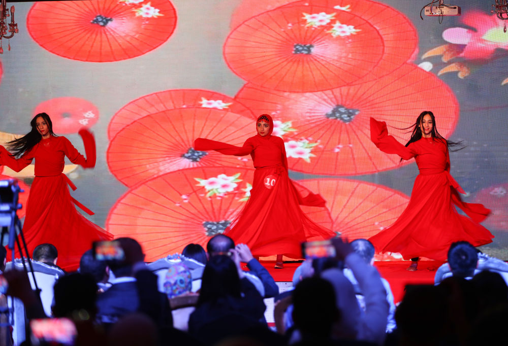5月12日,參賽選手在埃及開羅舉辦的第23屆“漢語橋”世界大學生中文比賽埃及大區(qū)賽上表演才藝。