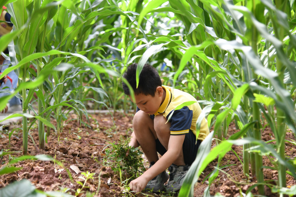 5月31日,老師帶領學生在之江小學勞動實踐基地學習蔬菜知識。