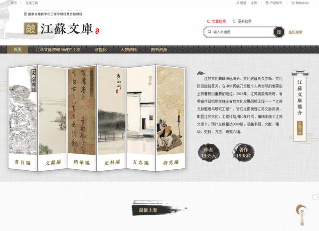 《江蘇文庫(kù)》數(shù)據(jù)庫(kù)軟件平臺(tái)首頁(yè)截圖