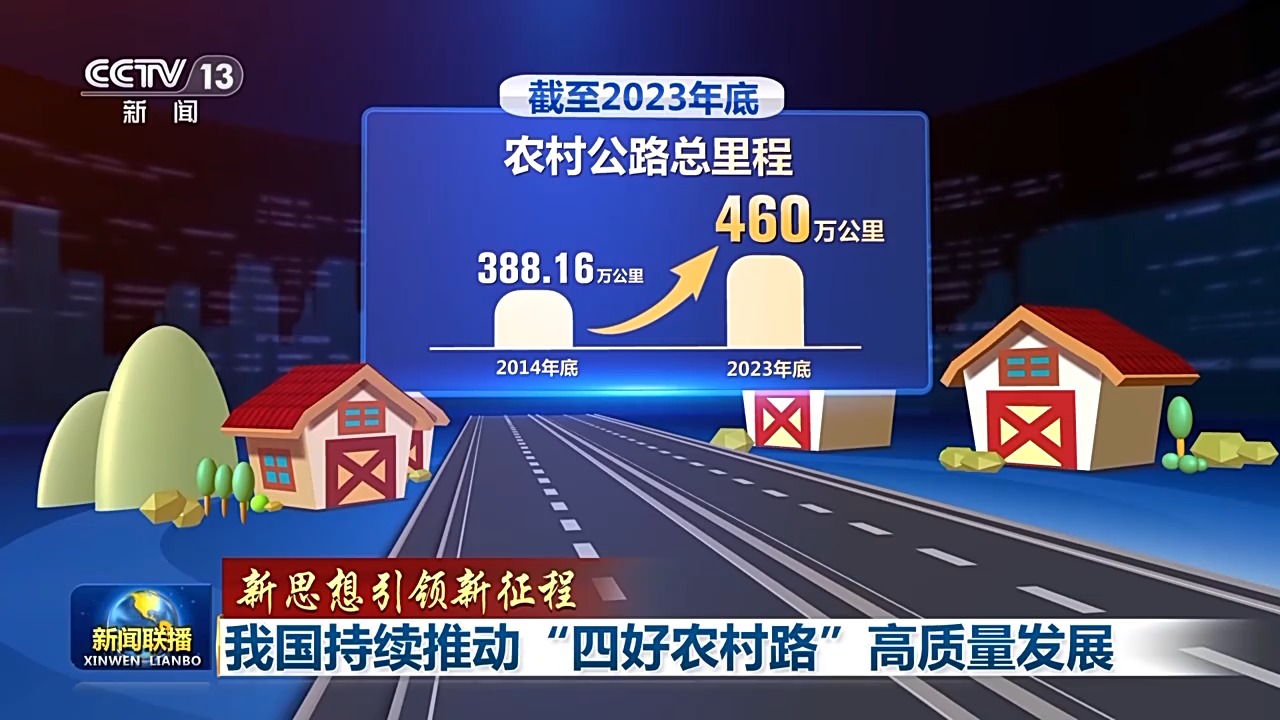 十年來,農(nóng)村公路取得歷史性成就。累計投入農(nóng)村公路建設(shè)資金達(dá)4.2萬億元,新改建農(nóng)村公路約250萬公里,截至2023年底,農(nóng)村公路總里程從2014年底的388.16萬公里增長到了460萬公里,農(nóng)村公路覆蓋范圍、通達(dá)深度、管養(yǎng)水平、服務(wù)能力和質(zhì)量安全顯著提高。