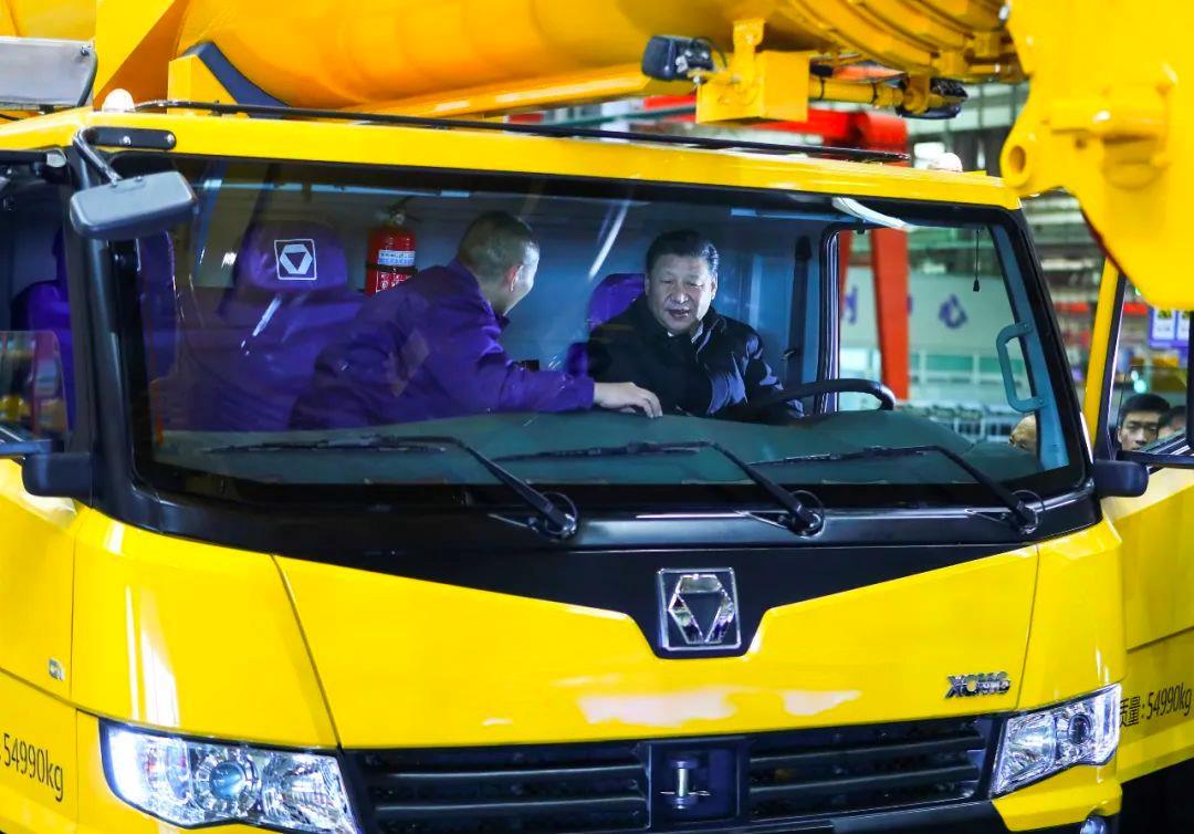 2017年12月12日,習(xí)近平總書記在江蘇徐州徐工集團(tuán)坐進(jìn)剛下線的XCA220型全地面起重機(jī)駕駛室,向技術(shù)人員詳細(xì)詢問起重機(jī)的性能、產(chǎn)量、價(jià)格等。