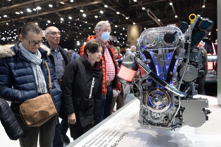 觀眾在瑞士舉行的2024年日內(nèi)瓦國(guó)際車展上參觀比亞迪新款發(fā)動(dòng)機(jī)。