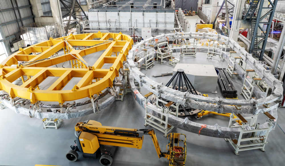 2024年5月27日在聚變堆主機關鍵系統(tǒng)綜合研究設施(CRAFT)園區(qū)內拍攝的TF超導線圈生產線(無人機照片)。該研究設施將為未來中國聚變實驗堆、工程堆的設計建設,搭建參數高、性能全、功能完備的綜合性研究及測試平臺。