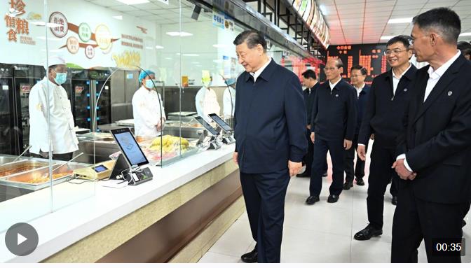 18日下午,習(xí)近平總書記來到果洛西寧民族中學(xué),走進食堂察看學(xué)生就餐條件,囑咐食堂工作人員一定要確保學(xué)生飲食安全、營養(yǎng)可口。