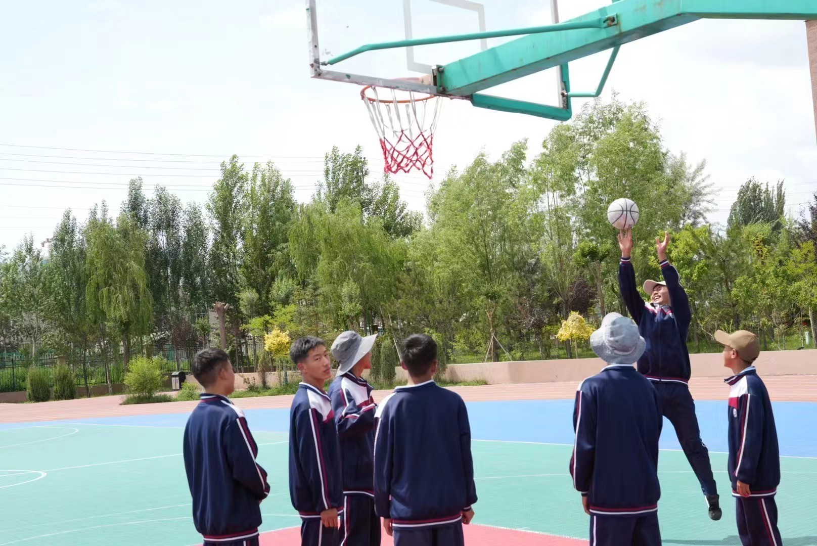 圖為果洛西寧民族中學(xué)的學(xué)生在籃球場(chǎng)揮灑汗水。喬 棟攝。
