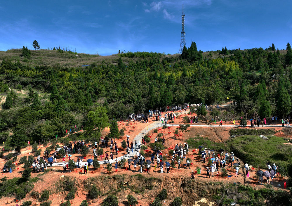 2023年6月28日,“鼓嶺緣”中美民間友好論壇在福州舉行。這是出席“鼓嶺之友”座談會的中美各界人士在鼓嶺共同植樹留念。新華社記者 魏培全 攝