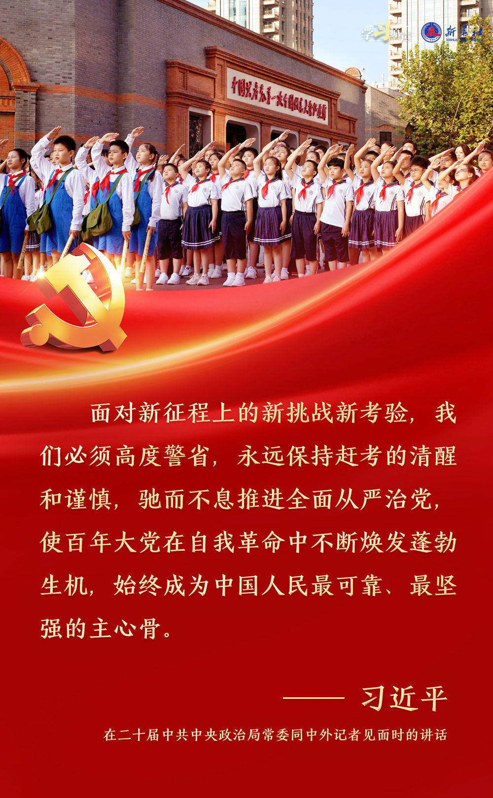習近平總書記強調(diào),面對新征程上的新挑戰(zhàn)新考驗,我們必須高度警省,永遠保持趕考的清醒和謹慎,馳而不息推進全面從嚴治黨,使百年大黨在自我革命中不斷煥發(fā)蓬勃生機,始終成為中國人民最可靠、最堅強的主心骨。