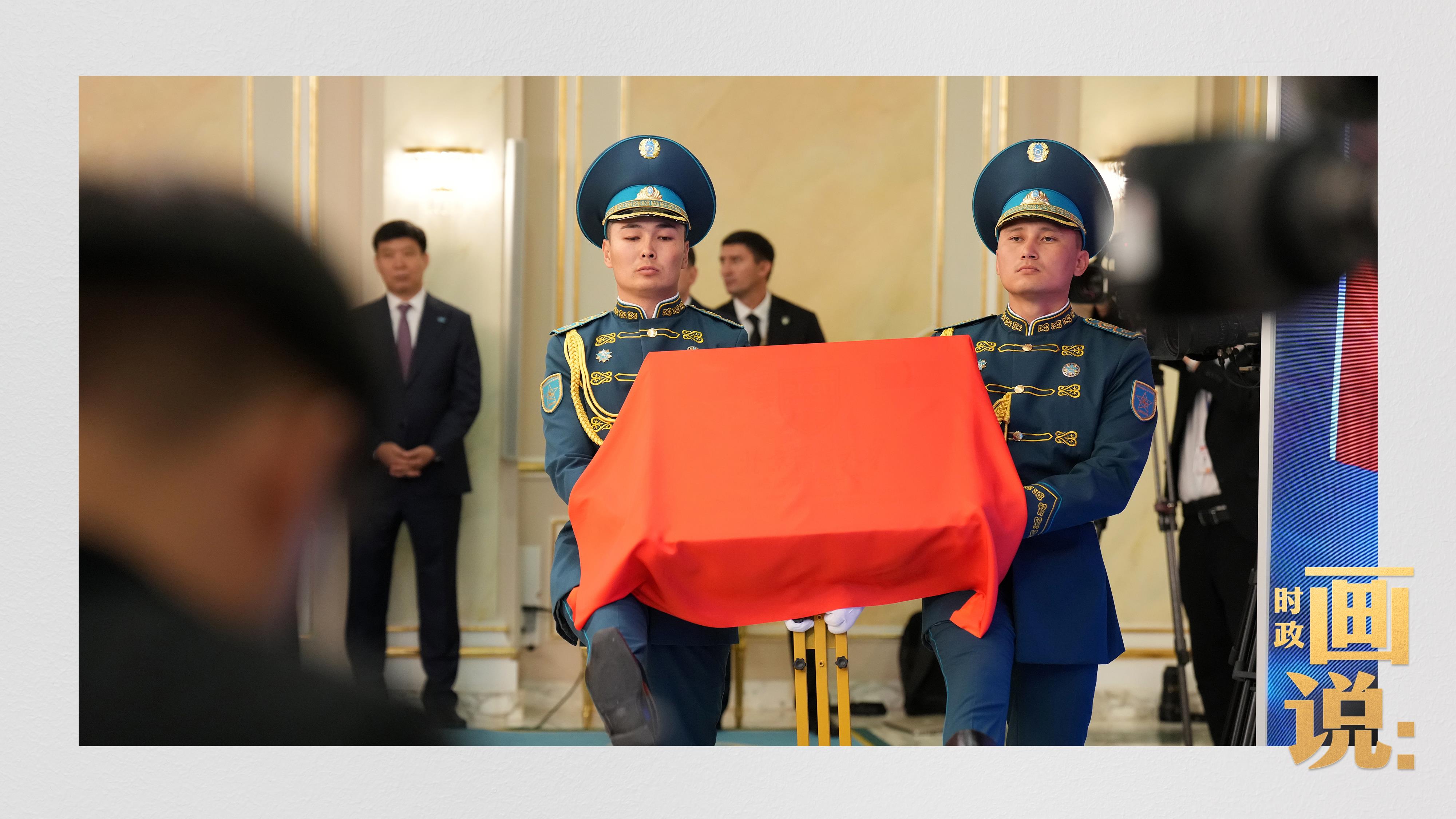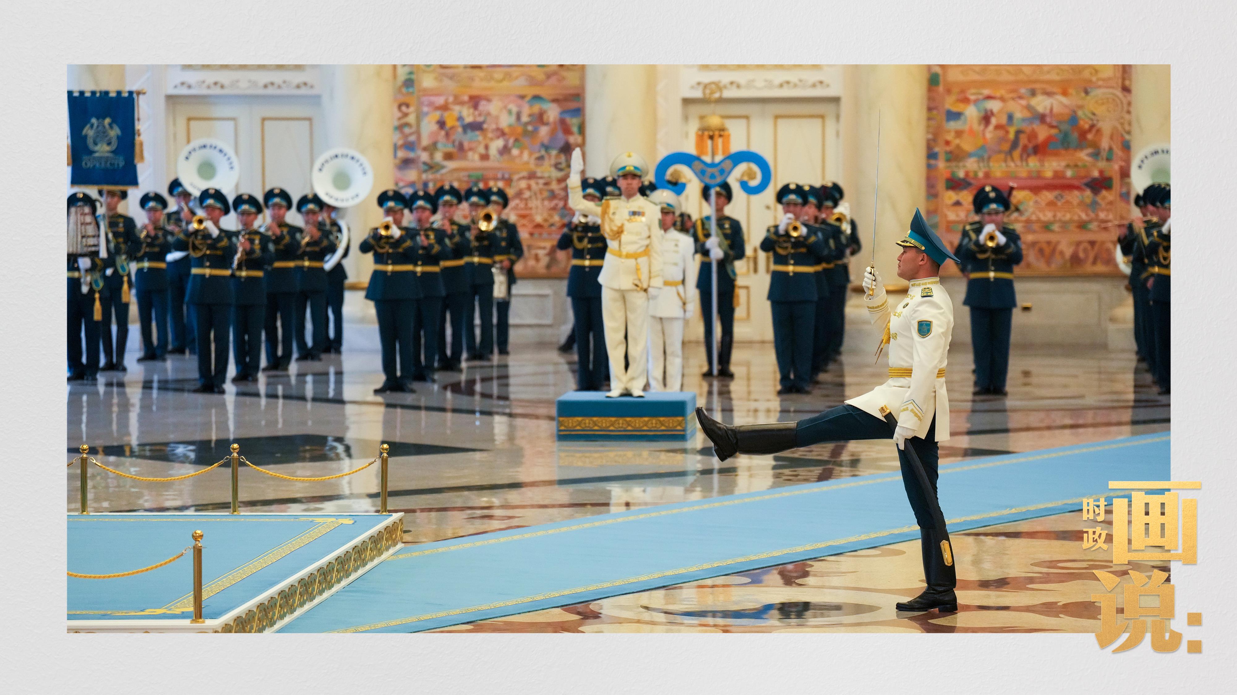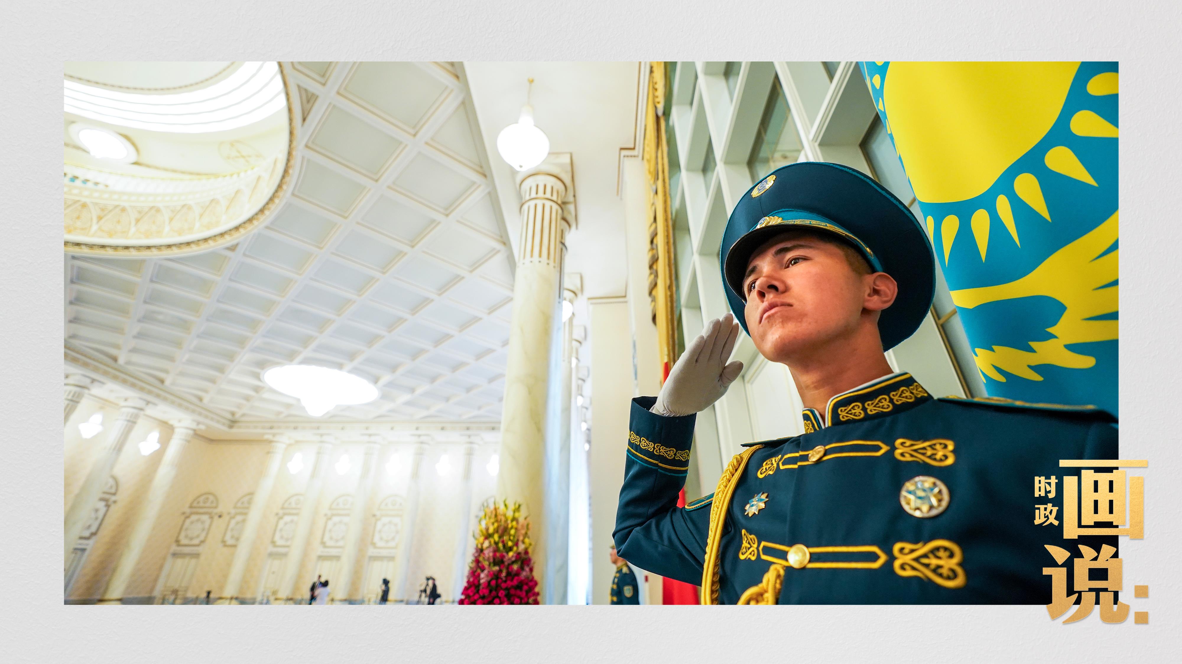 當?shù)貢r間3日,國家主席習(xí)近平在阿斯塔納出席哈薩克斯坦總統(tǒng)托卡耶夫在總統(tǒng)府舉行的歡迎儀式。習(xí)近平主席乘車抵達時,托卡耶夫總統(tǒng)熱情迎接,以最高禮儀歡迎習(xí)近平主席對哈薩克斯坦進行國事訪問。