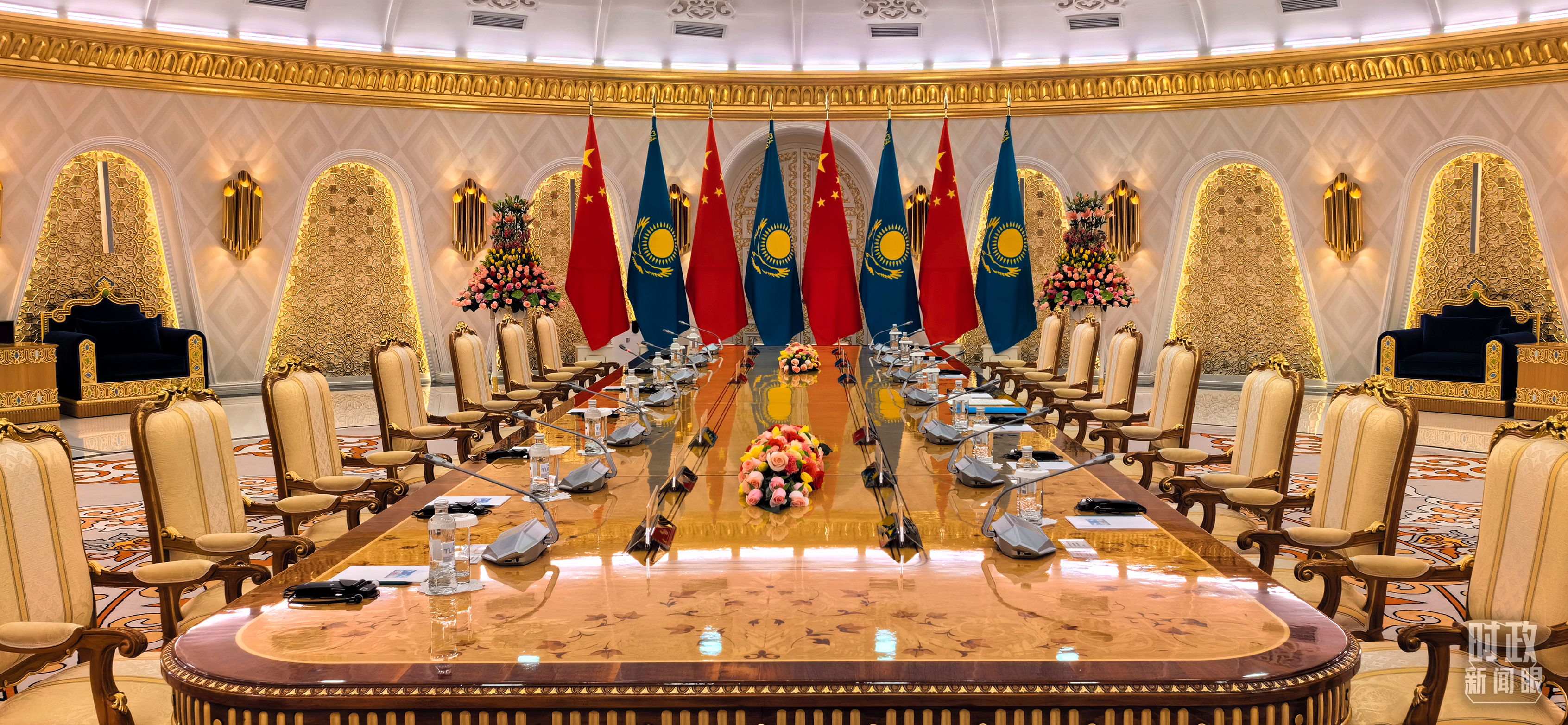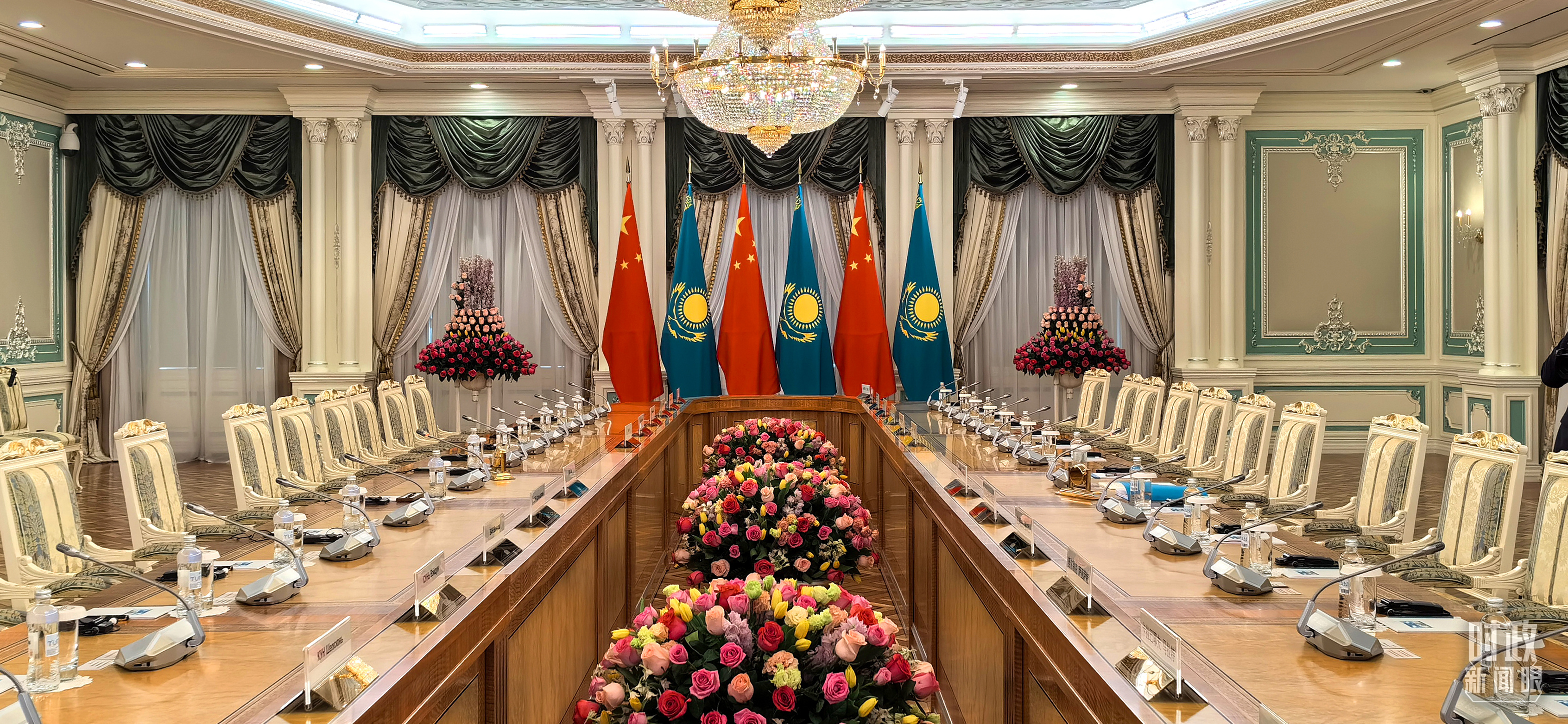 中哈元首小范圍會(huì)談開(kāi)始前的現(xiàn)場(chǎng)。(總臺(tái)央視記者劉岳拍攝)