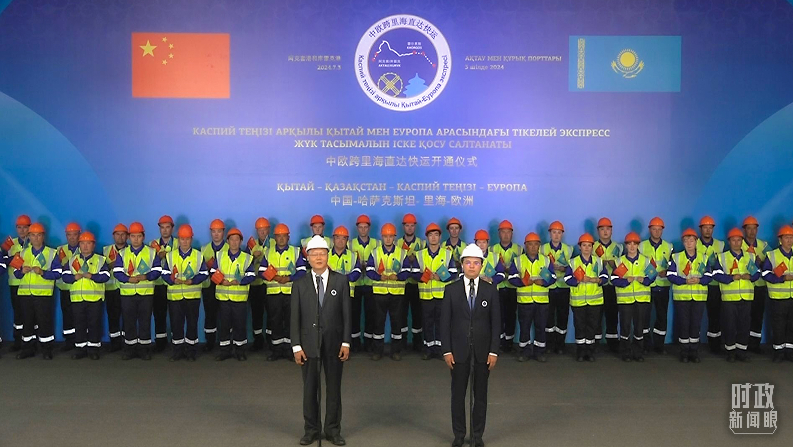 中歐跨里海直達(dá)快運(yùn)開(kāi)通儀式現(xiàn)場(chǎng)。