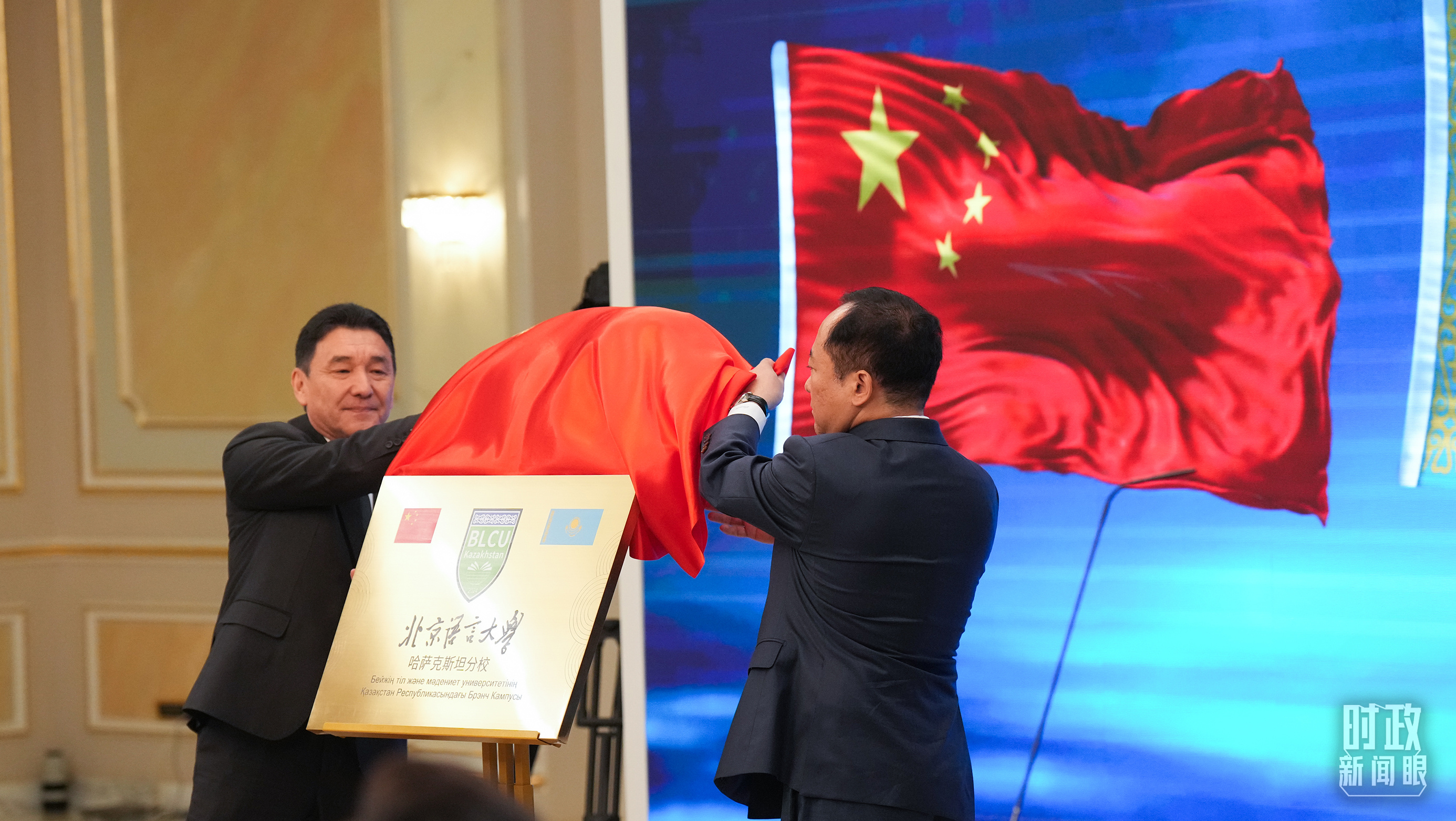 另一場(chǎng)是兩國(guó)文化中心和北京語(yǔ)言大學(xué)哈薩克斯坦分校揭牌儀式。