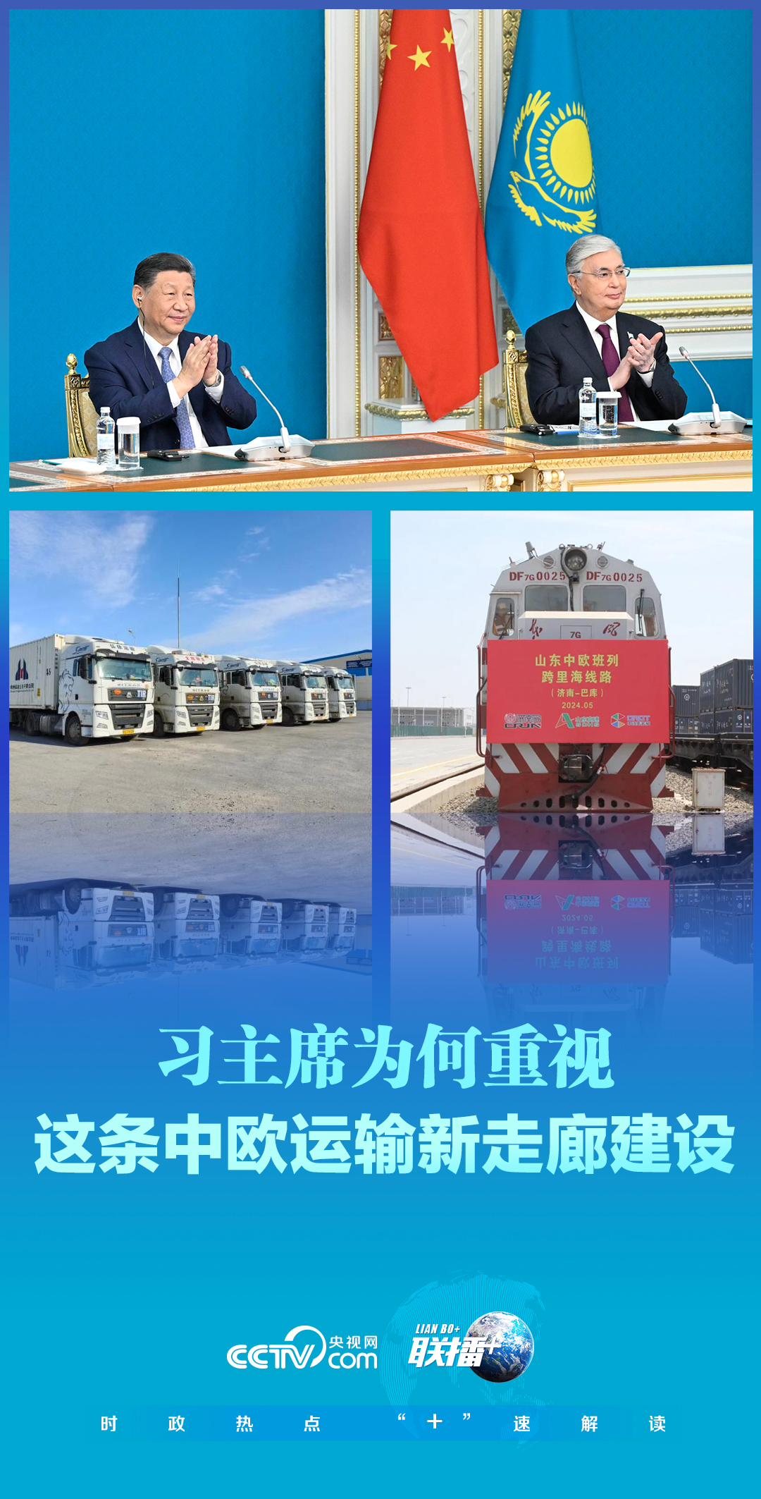 7月3日,正在哈薩克斯坦訪問的習(xí)近平主席同托卡耶夫總統(tǒng)以視頻方式共同出席中歐跨里海直達(dá)快運(yùn)開通儀式。兩國元首共同下達(dá)作業(yè)指令。