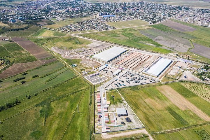 這是2019年5月21日在塔吉克斯坦丹加拉拍攝的中泰紡織廠(無人機照片)。新華社記者 張若玄 攝