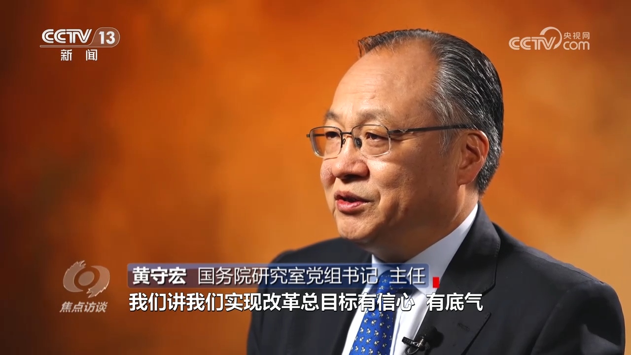 黃守宏:“在進(jìn)一步全面深化改革總目標(biāo)中,明確了到2035年的階段性改革目標(biāo),‘七個(gè)聚焦’的分領(lǐng)域改革目標(biāo),明確了到2029年完成《決定》提出的改革任務(wù)的要求,形成了在總目標(biāo)的統(tǒng)領(lǐng)之下,有總有分、總分結(jié)合、體系完備的目標(biāo)體系和推進(jìn)改革的時(shí)間表、路線圖、任務(wù)書(shū)。”