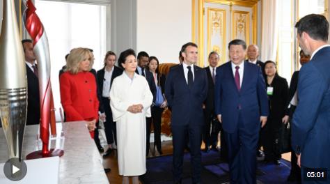 兩個(gè)多月前,國(guó)家主席習(xí)近平在巴黎愛麗舍宮同法國(guó)總統(tǒng)馬克龍舉行會(huì)談。會(huì)談前,兩國(guó)元首夫婦互贈(zèng)禮品。習(xí)近平主席贈(zèng)送給馬克龍總統(tǒng)的是北京雙奧火炬,馬克龍總統(tǒng)則以巴黎奧運(yùn)火炬回贈(zèng)。習(xí)近平主席說:“法國(guó)是一個(gè)體育強(qiáng)國(guó),我衷心祝愿巴黎奧運(yùn)會(huì)取得成功。中方將派出高水平代表團(tuán)赴法參賽?!?/p>
