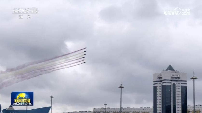 當?shù)貢r間7月2日,習(xí)近平主席飛抵阿斯塔納,開啟中亞之行。哈薩克斯坦總統(tǒng)托卡耶夫在機場舉行盛大迎賓儀式。第二天上午,哈薩克斯坦首次在總統(tǒng)府歡迎儀式上安排戰(zhàn)機表演,以最高禮儀歡迎習(xí)主席到訪。