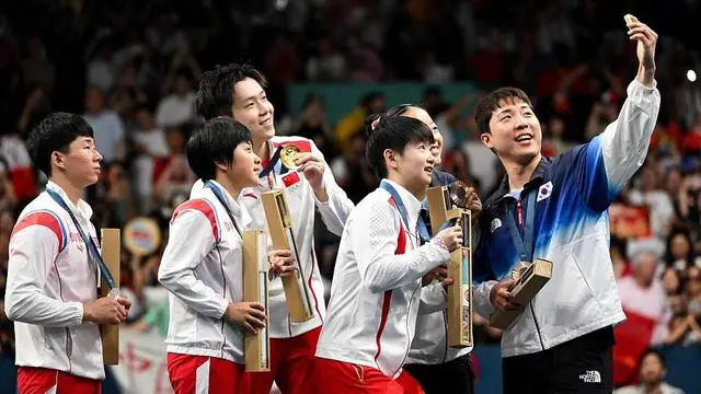 巴黎奧運(yùn)會(huì)乒乓球混合雙打頒獎(jiǎng)儀式結(jié)束后,中朝韓運(yùn)動(dòng)員聚到一起合影的場景,在朋友圈刷了屏。