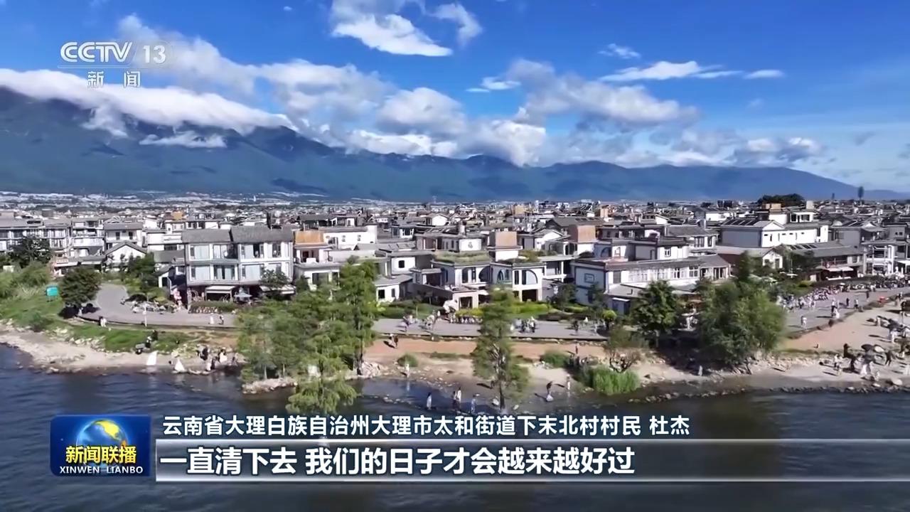 云南省大理白族自治州大理市太和街道下末北村村民 杜杰:我們村的人去洱海,如果看到垃圾他們會去撿。政府對洱海保護的決心力度是很大的,現(xiàn)在慢慢把我們村民也感化了,一定要保護好洱海,洱海水清了,一直清下去,我們的日子才會越來越好過。
