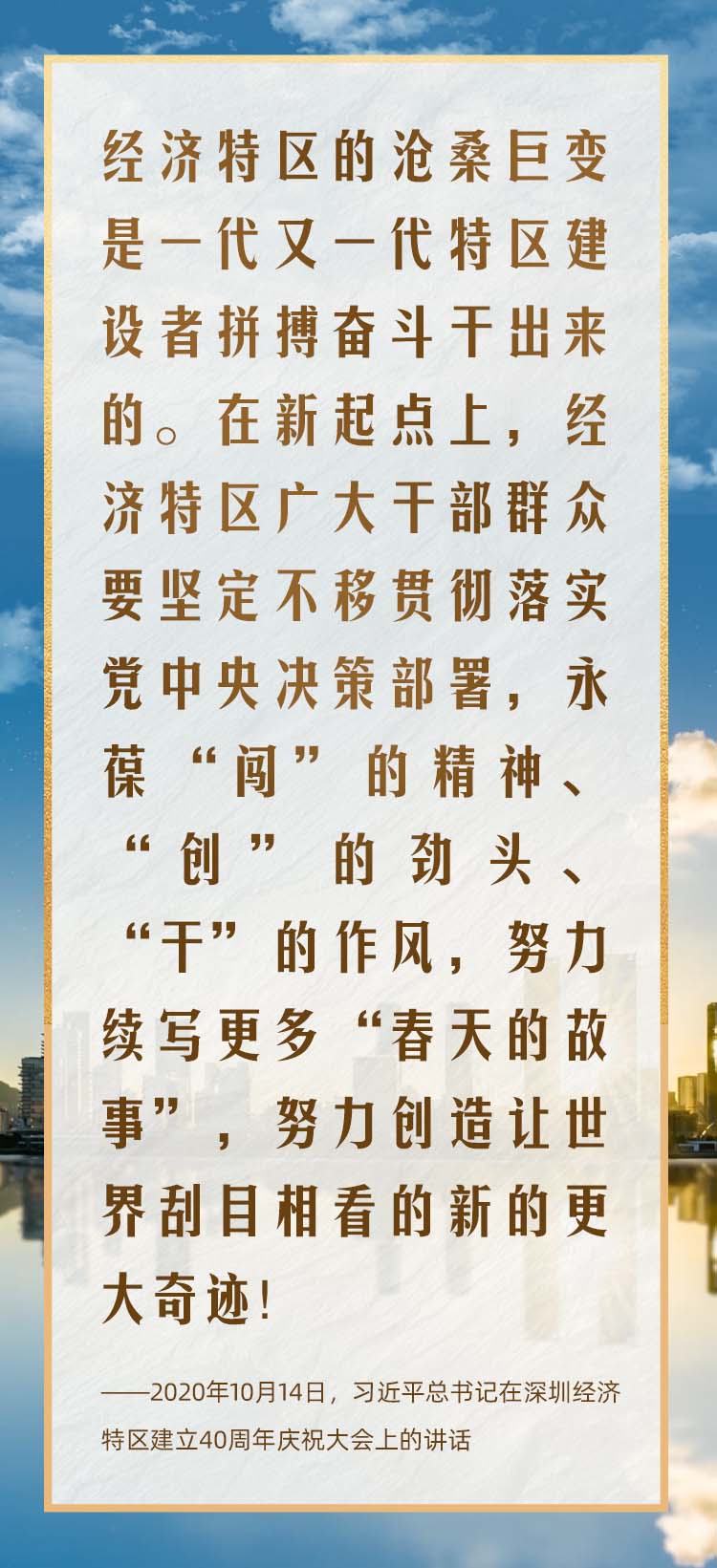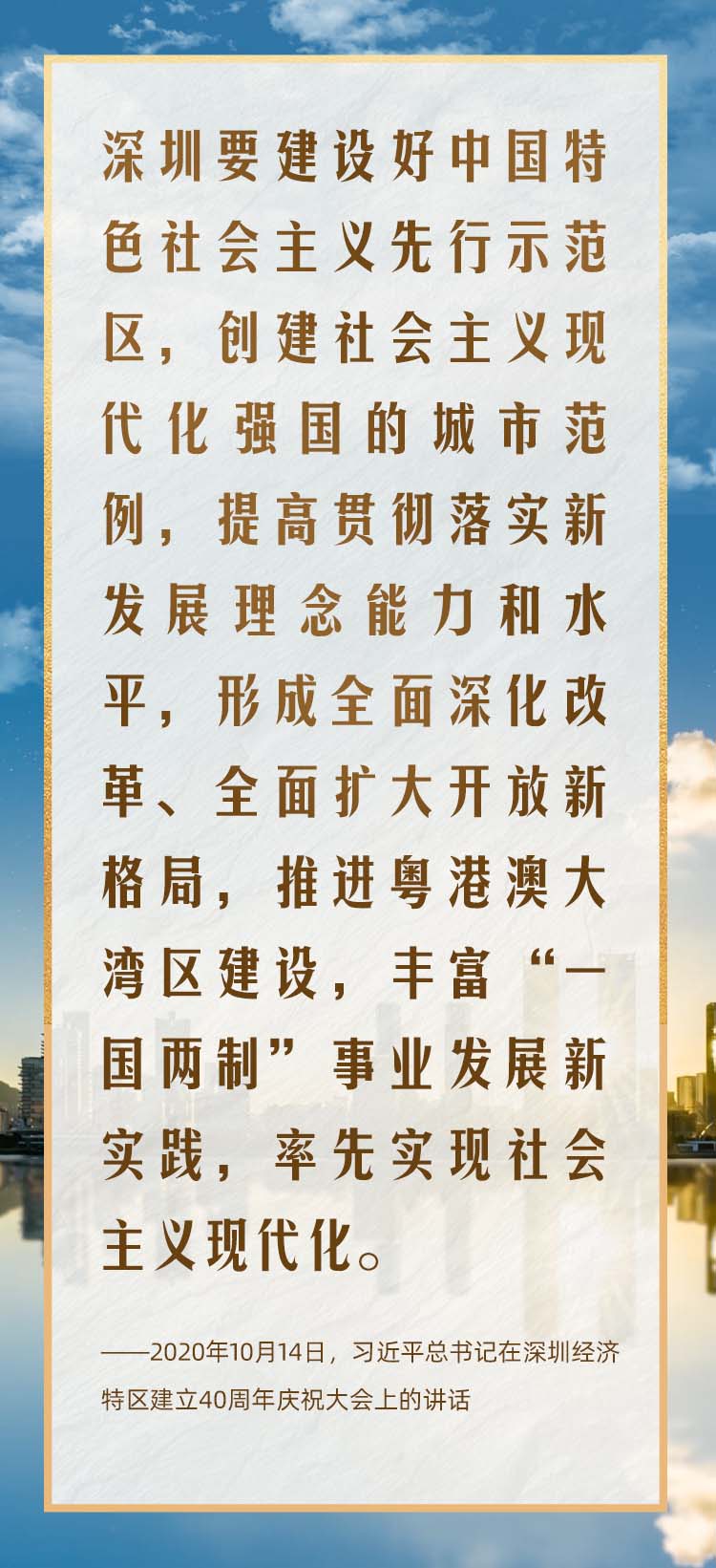 2020年10月,在慶祝深圳經(jīng)濟(jì)特區(qū)建立40周年之際,習(xí)近平總書記又一次來(lái)到這里,出席慶祝大會(huì),強(qiáng)調(diào)改革不停頓、開(kāi)放不止步,在更高起點(diǎn)上推進(jìn)改革開(kāi)放,推動(dòng)經(jīng)濟(jì)特區(qū)工作開(kāi)創(chuàng)新局面。