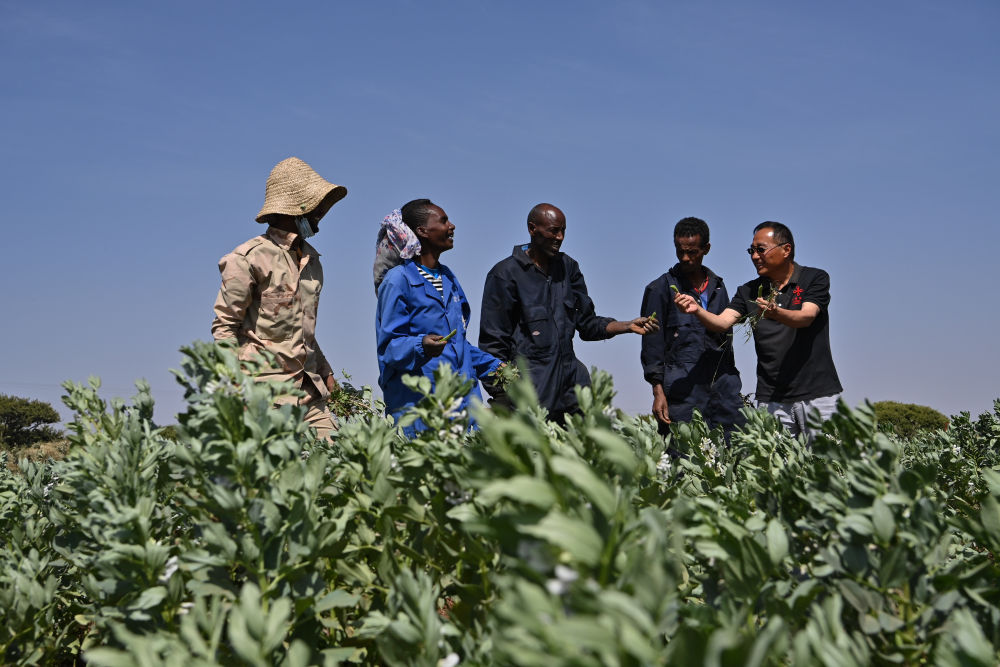 2023年9月27日,在位于厄立特里亞阿斯馬拉的農(nóng)業(yè)技術援助項目示范地,中國援厄第三期高級農(nóng)業(yè)專家組豆類作物專家劉運民(右一)與當?shù)剞r(nóng)戶交流。為推動厄立特里亞農(nóng)業(yè)產(chǎn)業(yè)發(fā)展,中國農(nóng)業(yè)農(nóng)村部已派出多批專家在厄立特里亞開展涉及豆類作物、果樹園藝、油料等領域的技術援助工作。