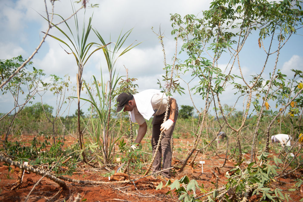 2020年3月24日,在位于海南省的中國熱帶農(nóng)業(yè)科學院的一處基地,來自埃及的副教授哈馬達·穆罕默德·哈?!ぐ⒉范爬瓍⒓又袊鵁峥圃簾釒锛夹g研究所木薯育種團隊開展的木薯選育新技術培訓。