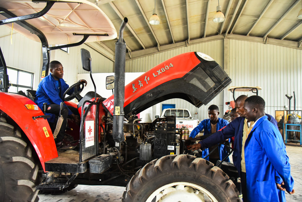 2023年1月12日,學生在喀麥隆亞巴西農(nóng)業(yè)職業(yè)技術中學上拖拉機實踐課。亞巴西農(nóng)業(yè)職業(yè)技術中學由中方援建,是喀麥隆第一所農(nóng)業(yè)技術學校。新華社發(fā)(科普索攝)