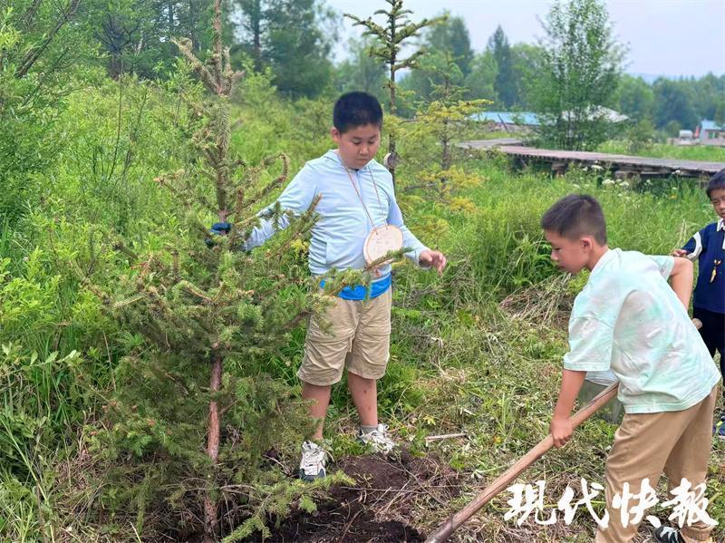 這樣的美麗風(fēng)景讓第一次來到大草原的周云昊很興奮?!拔覀儚漠?dāng)?shù)亓私獾?,這是一代又一代人努力的結(jié)果,讓我們也深切感受到生態(tài)保護(hù)的重要性?!毖袑W(xué)途中,周云昊和小伙伴們還專門在當(dāng)?shù)亓謭龇N下一棵樹?!跋M芙】甸L大,成為守護(hù)綠色草原的小衛(wèi)士?!?/p>