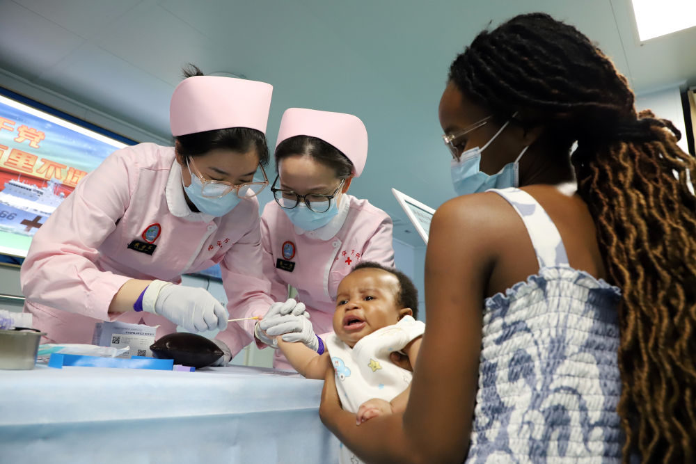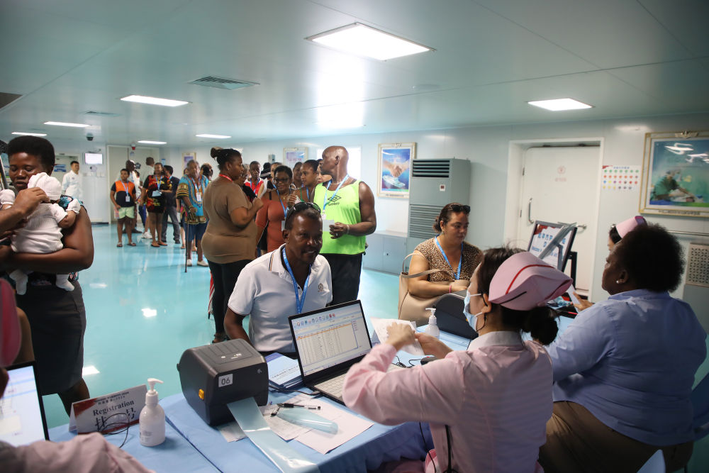 2024年8月12日,中國海軍“和平方舟”號醫(yī)院船在莫桑比克馬普托開展醫(yī)療服務(wù)。