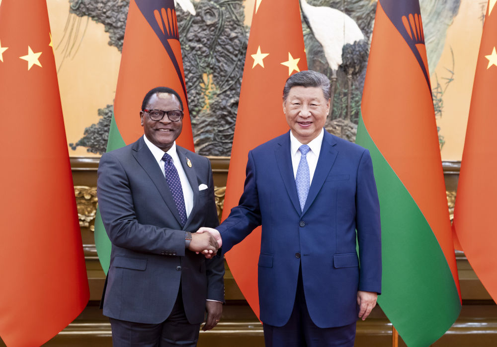 9月3日上午,國家主席習(xí)近平在北京人民大會堂會見來華出席中非合作論壇北京峰會的馬拉維總統(tǒng)查克維拉。新華社記者 翟健嵐 攝