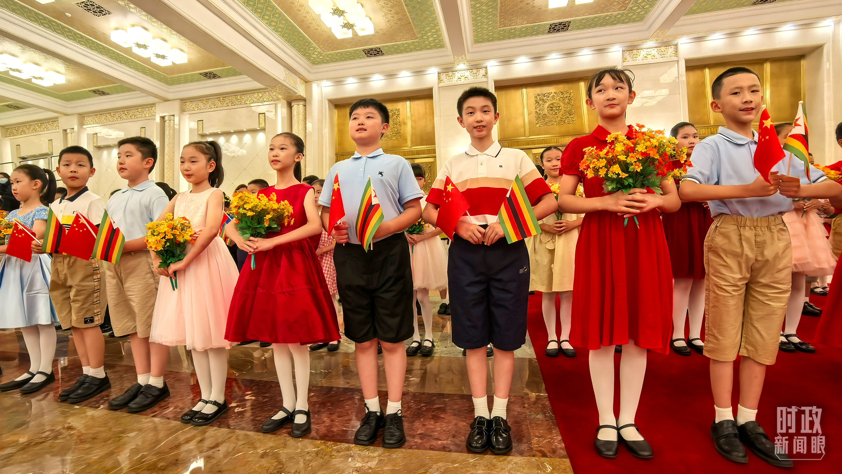 △現(xiàn)場歡迎津巴布韋總統(tǒng)訪華的青少年。(總臺央視記者鐘銳拍攝)
