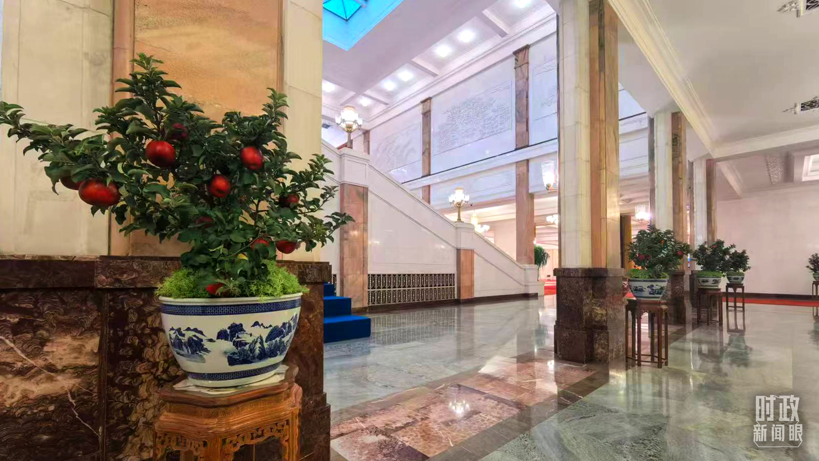 △大會堂內(nèi)的“碩果累累”盆栽。(總臺國廣記者吳倩拍攝)