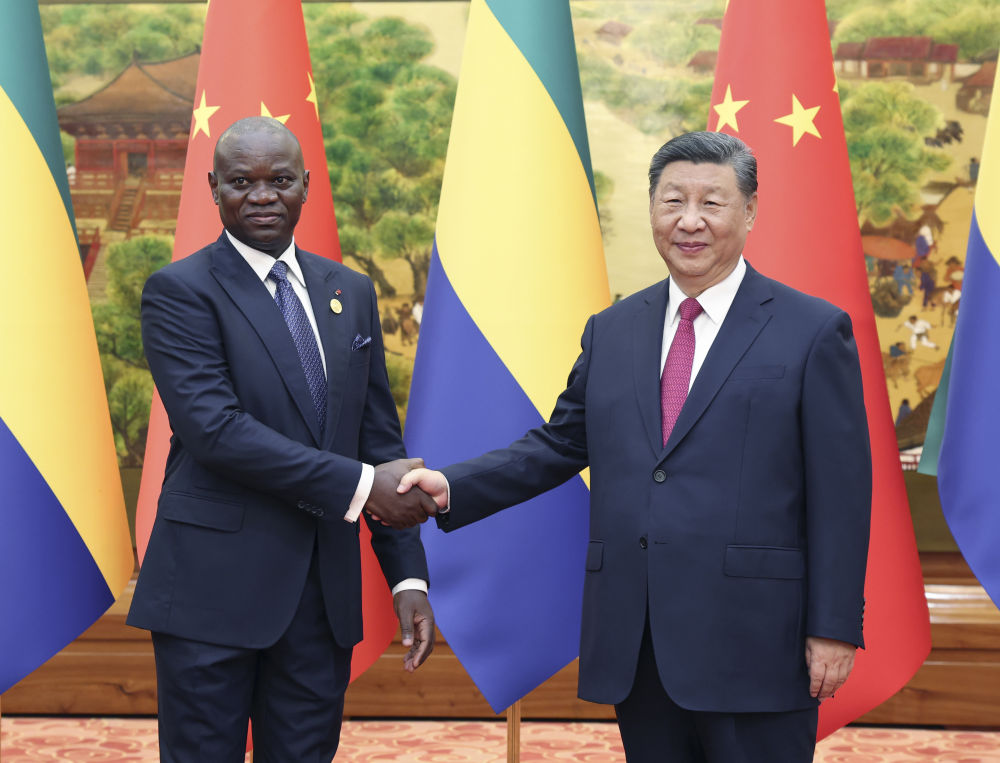 9月4日下午,國家主席習(xí)近平在北京人民大會(huì)堂會(huì)見來華出席中非合作論壇北京峰會(huì)的加蓬總統(tǒng)恩圭馬。