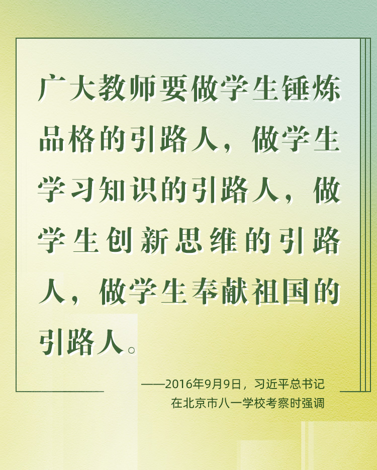 他們帶領學生前行,更新舊知、開掘新知、探索未知;他們肩負光榮使命,為黨育人、為國育才、為民育未來。守教育報國初心、擔立德樹人使命、圓民族復興之夢,建設社會主義現(xiàn)代化強國之路上,教育家精神自當念茲在茲、代代傳承、光芒永綻。