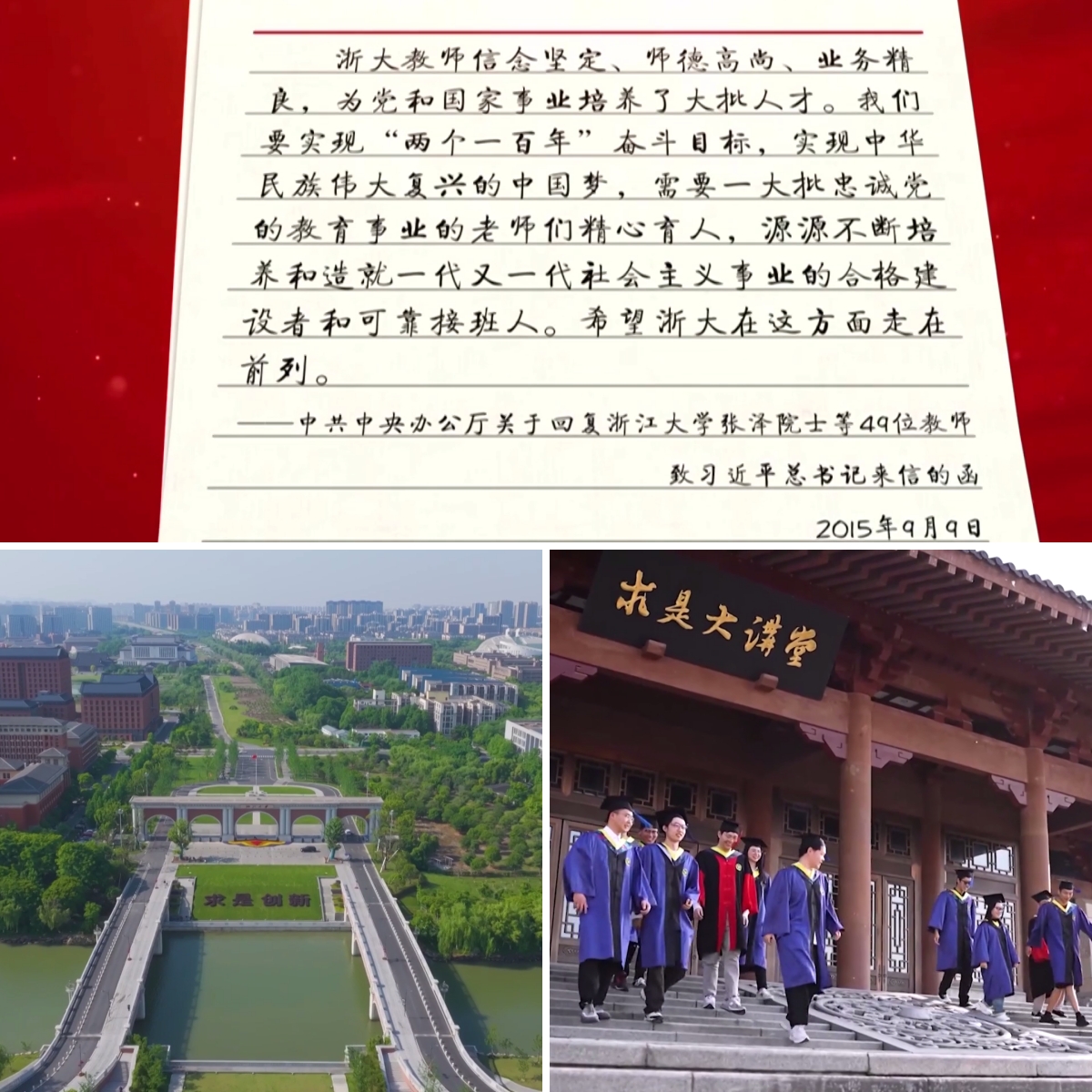 2015年9月9日,教師節(jié)前一天,浙江大學(xué)的49位老師收到了一份特殊的教師節(jié)禮物,習(xí)近平總書記特別囑咐中共中央辦公廳,發(fā)來了關(guān)于回復(fù)49位老師來信的函。