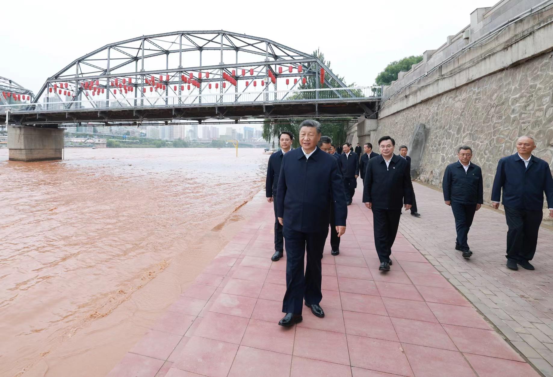 9月11日下午,甘肅蘭州市黃河蘭州中山橋段,習(xí)近平總書記了解當(dāng)?shù)赝苿狱S河流域生態(tài)保護等情況。