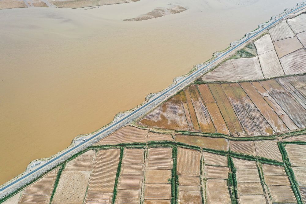 2024年5月9日在陜西省寶雞市拍攝的黃河最大支流渭河沿岸景色(無(wú)人機(jī)照片)。