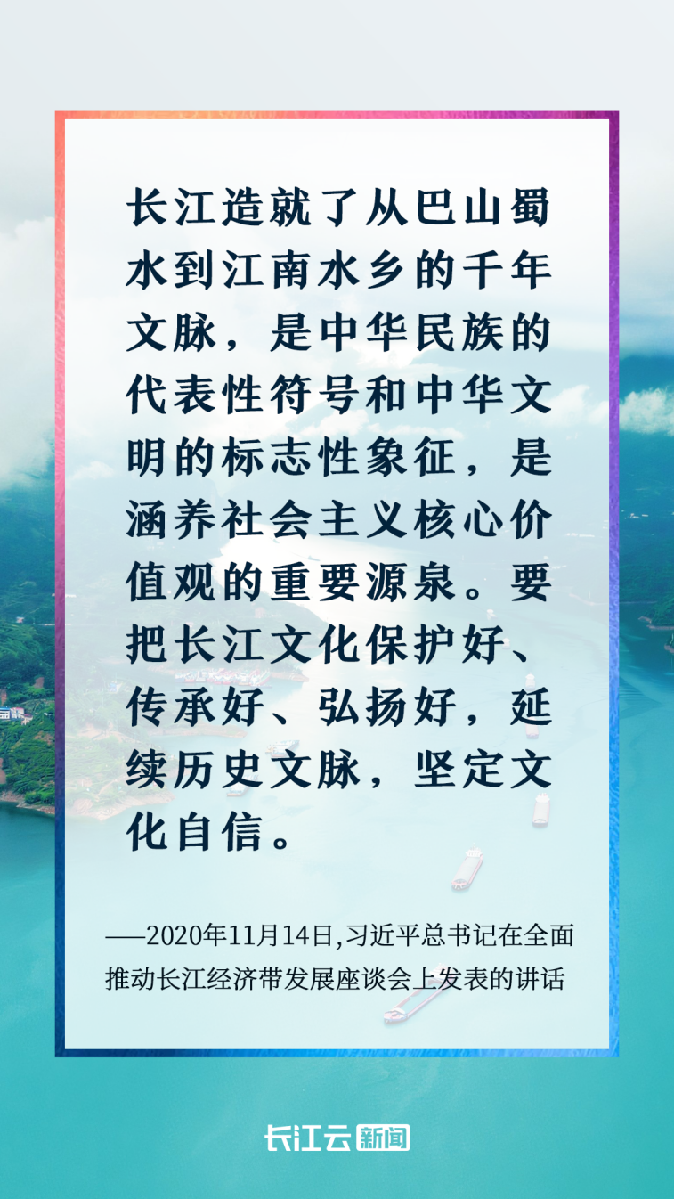 長(zhǎng)江之水萬(wàn)古奔流,千年文脈生生不息。黨的十八大以來(lái),習(xí)近平總書(shū)記高度重視長(zhǎng)江文化保護(hù)傳承弘揚(yáng),先后發(fā)表一系列重要講話(huà),作出一系列重要指示批示,強(qiáng)調(diào)“要把長(zhǎng)江文化保護(hù)好、傳承好、弘揚(yáng)好,延續(xù)歷史文脈,堅(jiān)定文化自信”。